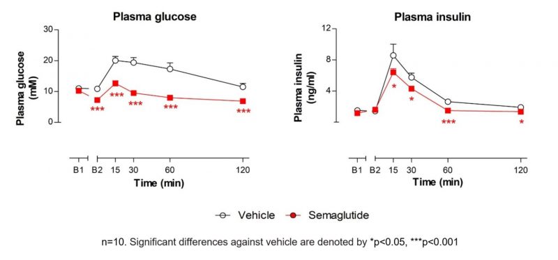 Semaglutide improved glucose tolerance during an oral glucose challenge in the DIO mouse model: