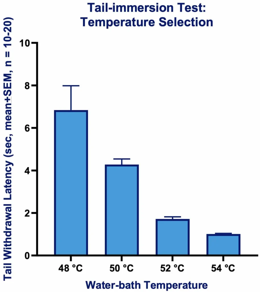 After rigorous evaluation of the tail-immersion pain model, 50Β°C emerged as the optimal temperature for eliciting discernible and consistent pain responses. This temperature was meticulously selected to balance the fine line between inducing a perceptible nociceptive reaction and ensuring the well-being of the test subjects.