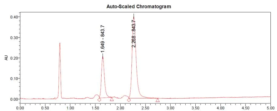 The compound produced tailing peaks under reverse-phase HPLC. Switched to achiral SFC, improving both separation and speed.