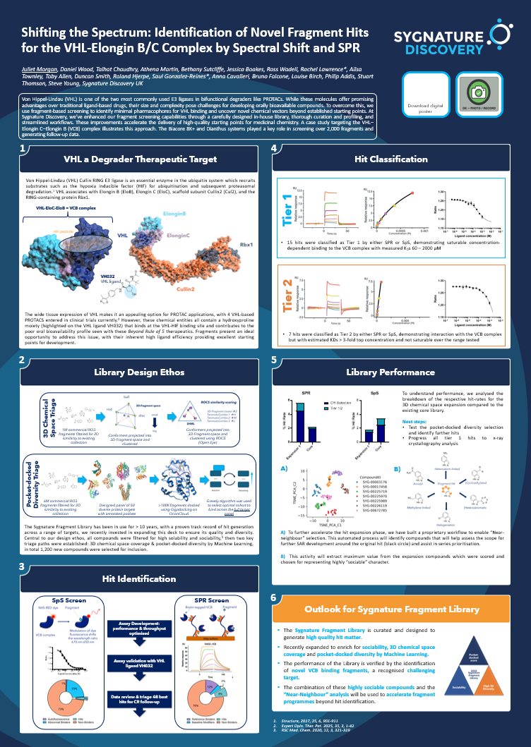 Sygnature Discovery’s fragment screening platform is built to help you find high-quality starting points and progress them with confidence. We combine a purpose-designed fragment library with integrated biophysics, structural biology, computational chemistry and chemistry to tailor each campaign to your target, your biology, and your program goals.