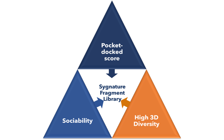 Our in-house fragment library has been carefully engineered to maximize the likelihood of identifying tractable hits. It is curated for optimal chemical space and shape coverage, and fragments are selected for high “sociability” to support efficient progression through follow-up chemistry. Recent library expansions have been pocket-docked and machine-learning – scored against a panel of 50 diverse therapeutic target pockets to ensure practical relevance.