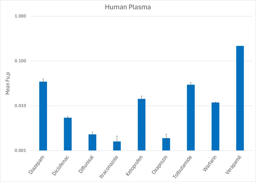 The workflow supports efficient processing of multiple compounds, offering a scalable and reproducible platform suitable for early discovery PPB screening as well as more detailed characterisation of highly bound compounds where the fraction unbound must be resolved with confidence (ICH M12 guidelines). Because the method captures both binding and recovery data, it offers a comprehensive assessment of compound behaviour in plasma.