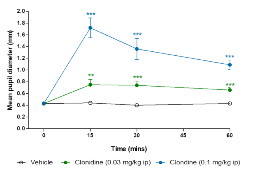 Adding to our portfolio of CNS services, we have recently developed a pupillometry model of morphine- and clonidine-induced mydriasis. This assay can be utilised to better understand the pharmacology of novel centrally acting drugs, and as a measure of parasympathetic and sympathetic tone.
